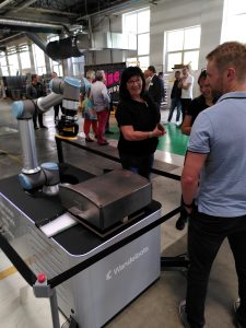 Ab 11:00 Uhr war es den Besucher:Innen möglich, an einen geführten Rundgang durch das Unternehmen teilzunehmen. Da für Frühjahr oder Sommer 2024 die Inbetriebnahme eines neuen Fertigungsbereichs geplant ist, möchte die caleg group in Calau hierfür neue Laserschweißtechnik, Schweißroboter aber auch cobotbasierte automatisierte Bauteilentgratung einsetzen. Das Unternehmen arbeitet deshalb sehr eng im Projekt PAL – PerspektiveArbeit Lausitz mit der Hochschule Mittweida, dem ICM – Institut Chemnitzer Maschinen- und Anlagenbau e. V. und der Dresdner Wandelbots GmbH zusammen, bei dem es um robotergestützte Fertigung geht. Erste Eindrücke von dieser Zusammenarbeit konnten sich die Besucher:innen nun verschaffen.