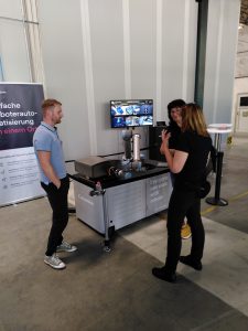 Gemeinsam mit Markus Garlich, Leiter Technik bei der caleg Schrank und Gehäusebau GmbH, wurden beim PAL-Infostand, neben der allgemeinen Projektvorstellung, auch erste Ergebnisse aus dem „Schwerpunktprojekt 3“ demonstriert. Es umfasst das intuitive, nutzerzentrierte Roboter-Teaching in differierenden Systemen der Fertigung unter FTS-Einbindung und Applikation sensorischer Daten. Dieser Forschungs- und Entwicklungsansatz wurde hierbei um das Thema des automatisierten und cobot-basierten Schweißens ergänzt. Daraus soll perspektivisch bei der caleg group ein sogenanntes „Innovation Lab“ aufgebaut werden. Ziel dieses Innovation Labs ist es, die Entwicklungsarbeiten und -ergebnisse im realen Umfeld den Vertretern von Partnerunternehmen und interessierten Unternehmen zu demonstrieren.